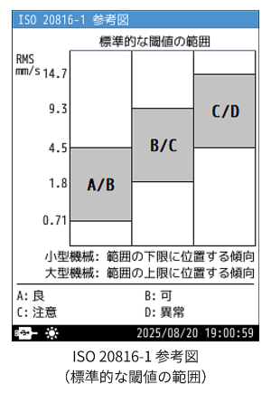 ● ISO 10816-1に基づく判定基準値、またはISO 20816シリーズに基づく任意の判定閾値を設定することが可能