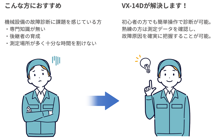 機械の異常の早期発見、設備故障による生産停止の防止に役立ちます。